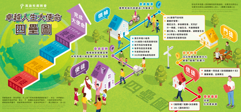 透過操練6個屬靈好習慣,幫助弟兄姊妹有健康的靈命,將福音帶入職場、家庭、社區,不只成為作禮拜的基督徒,更是成為拓展神國度的得人漁夫。
