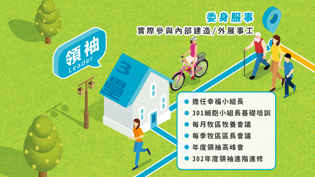 教會致力於全方位的栽培會友成為各方面的領袖,不只培育牧養、傳福音的領袖,在各個事工當中也積極培育會友,目的是為成全聖徒、建造教會,也幫助每個人更多發現自己的恩賜。